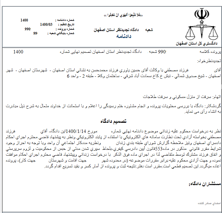 در این خصوص بهره ببرید.هر چند ممکن است شخص محکوم نیز بتواند خودش این امور