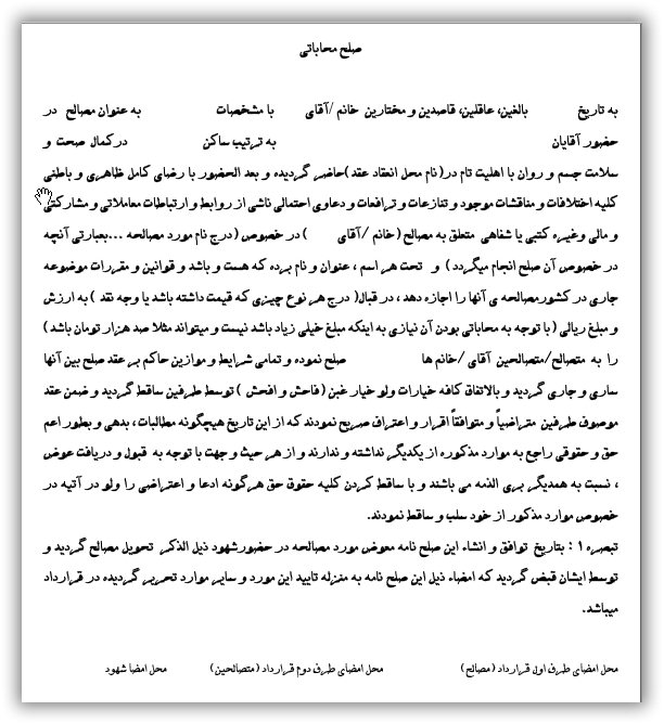 اینکه عقد عقد صلح چیست؟ و نمونه قرارداد صلح کدام است