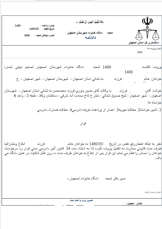 ارسال شده توسط وکیل پایه یک دادگستری در ۱۴۰۰-۰۳-۳۰
