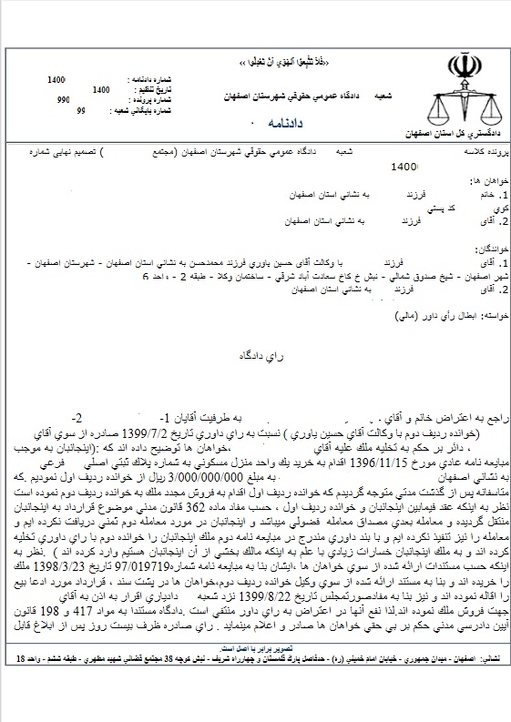 ارسال شده توسط وکیل پایه یک دادگستری در ۱۴۰۰-۰۳-۳۰
